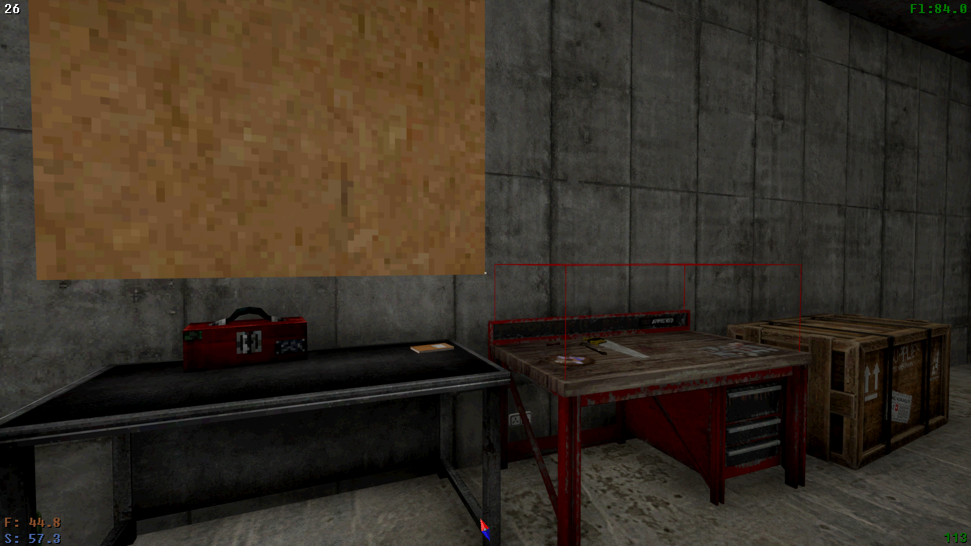 Test version is a test version, but there is bugs. First, i see hitbox, or something of that, of workbench, and second, all the posters are none useable and have this texture