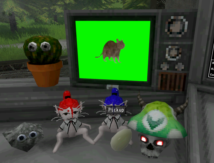 If you put a camera on the wall beside the ladder down in the painting room, it tends to swap orientation when the game loads and ends up outside the game geometry - letting you look at some of the things happening behind the scenes.